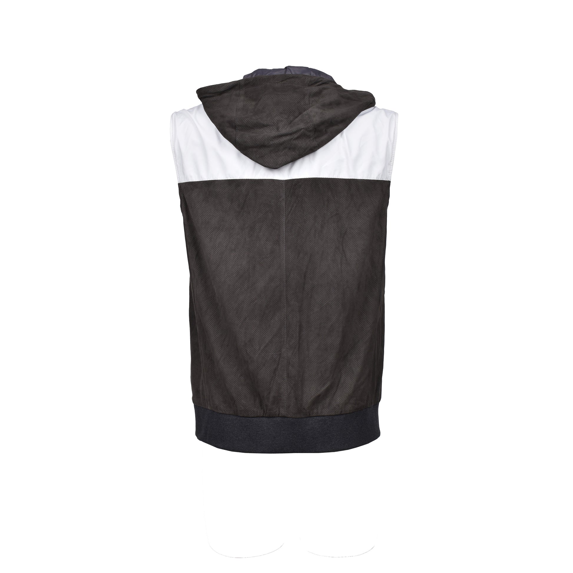 BRUNELLO CUCINELLI MEN'S TWO TONE ATHLETIC SUEDE HOODIE VEST/JACKET